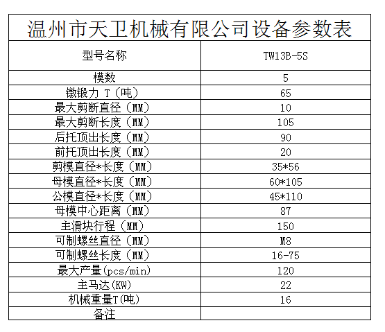 Current location:Home  / Products  / Five die five punch multi station cold heading machine  / └ TW13B(M8) / TW13B-5S fully automatic multi station cold heading machine